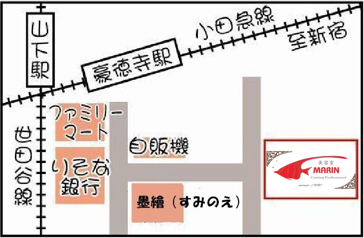 周辺地図 〒154-0021 東京都世田谷区豪徳寺1-21-5ヴィラ・ゴートク3-J TEL 03-3439-1700 アクセス 小田急豪徳寺駅改札を出て左、りそな銀行の向かいパン屋「墨檜(すみのえ」手前の路地に入る 突き当りのデザイナーズマンションの3階(徒歩1分)